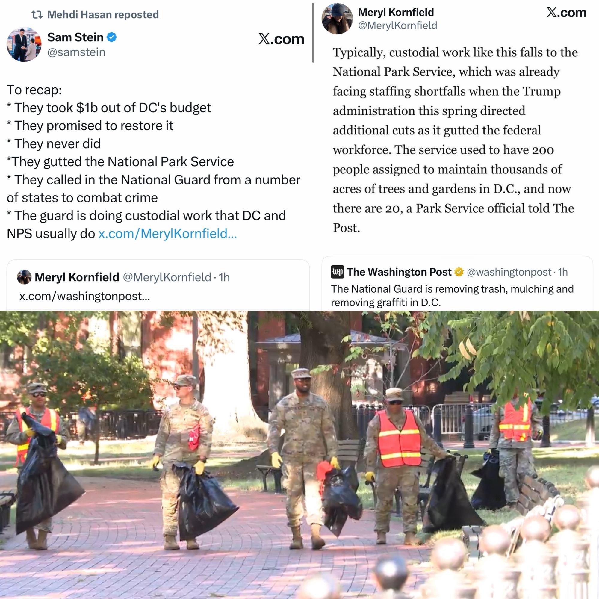 As @the_unfiltered_veteran says: "How demoralizing for the national guard ! I have a feeling our enlistment numbers are at an all time low....National Guard in Washington DC on trash duty..."